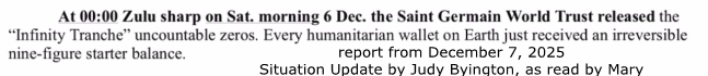 S i t e S e a r c h . A_B_C_D_E_F_G_H_I_J_K_L_M_N_O_P_Q_R_S_T_U_V_W_XYZ . List of Topics__Ask Suby__Free Stuff__Questions Lists Terms of Use________________Privacy Policy Our Galactic Family Ready to help at the right moment. But who are they?.Joshua 11:23. 'We Are Under The Protection' is from 1:08:26.(1 hour, 8 minutes, 26 seconds).in at https://rumble.com/v443k0l-wtpn-situation-update-122923.html What's a cloaked ship look like? Pay close attenion to the opening of any of the Situation Updates by Judy Byington and you'll see one partially cloaked going through the blue sky.