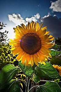 The sunflower angles out